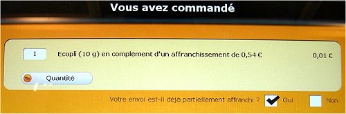 Another new feature. After selecting the shipment type, the system indicates the postage rate and asks if the postal item is already partially franked ('Votre envoi est-il déjà partiellement affranchi ?'). |