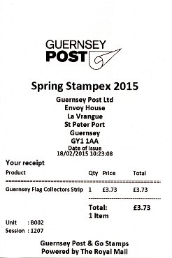 As can be seen in the above first day receipt, the stamps bought at the postal kiosk were billed with a 20% surcharge on the face value, because of the VAT on sales made by Guernsey Post in the UK.
