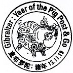 The 'Year of the Pig' design was available from November 13th 2019, from the GI05 DKU machine installed at the Gibraltar Philatelic Bureau premises.