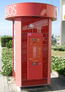 The 7 postage values programmed into the majority of Amiel (right image, integrated in a street postal kiosk), SMD and NewVision machines, on the date of issue, were: 0.32, 0.53, 0.57, 0.68 and 0.80 EUR, and CORREIO AZUL 0.47 and 1.85 EUR.