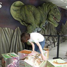 The composition includes a complete picture of the dinosaur at the left side of the design, and the head detail on the right.