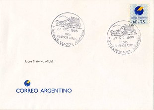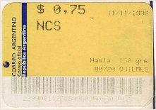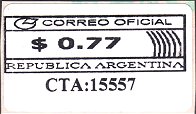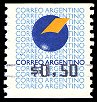 A la izquierda, logotipo del Correo Argentino de pequeño tamaño y textos verticales dispuestos en 3 líneas.